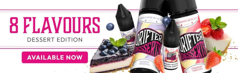 Drifter Desserts e-liquids are a range of 10ml nic salts and 100ml shortfills crafted with MTL (Mouth To Lung) vapers in mind. Made to a 50% VG concentration, they’ll create a discreet amount of vapour when paired with your refillable MTL vape kit. With a focus on indulgent flavours, that include doughnut, cheesecake and more, they’re ideal if you like something sweet and complex.